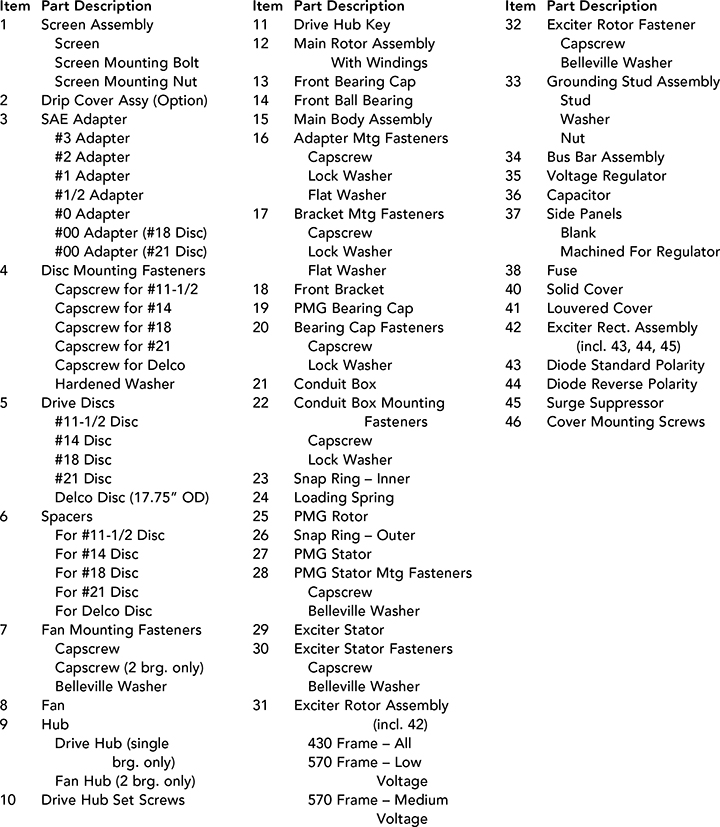 Bestel bij Van Dalen Aggregaten (vervangende) onderdelen voor uw generator. Aan de hand van de tekening en de corresponderende nummers kunt u precies zien welk onderdeel u nodig heeft.